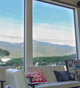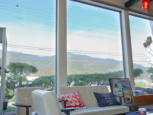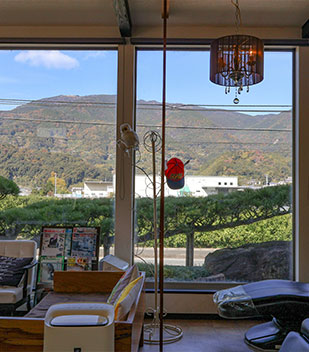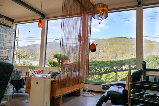 窓から見える勝浦の景色とともに、